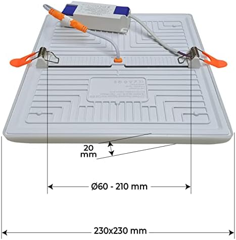 Die Maße von 230 x 230 x 20 mm und der verstellbare Schnittbereich von 60 bis 210 mm machen dieses LED-Downlight besonders vielseitig einsetzbar. Egal ob in Wohnräumen, Büros, Geschäften oder Restaurants – dieses Licht passt sich jeder Umgebung an und setzt stimmungsvolle Akzente. Die schlichte, moderne Designsprache fügt sich harmonisch in jedes Dekor ein.