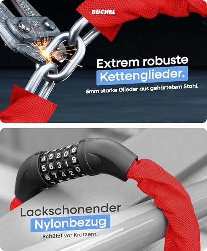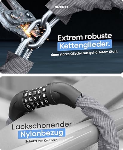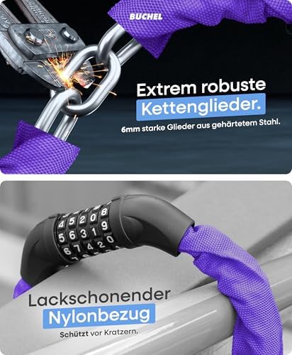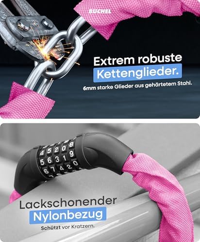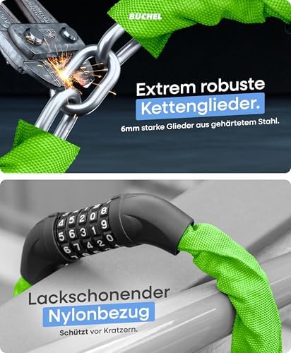 Das BÜCHEL Fahrradschloss garantiert Sicherheit bei Tag und Nacht. Mit 6 mm starken Gliedern aus gehärtetem Stahl und einem stabilen Schließkern schützt es dein Rad effektiv vor Diebstahl. Dieses Produkt ist ideal für Kinder und ermöglicht ein sicheres Gefühl im Alltag.