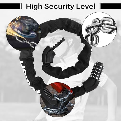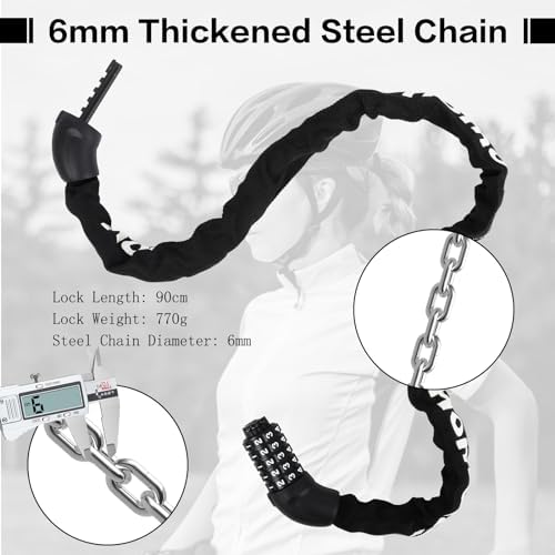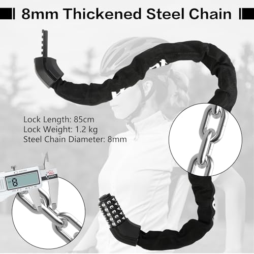 Sicherer Schutz ist unerlässlich, wenn es um die Sicherheit Ihres Fahrrads geht. Unser hochwertiges Schloss besteht aus robustem Manganstahl mit einer Dicke von 8 mm. Im Vergleich zu anderen Kettenschlössern mit 6 mm Dicke bietet unser Schloss überlegene Schnittfestigkeit und Langlebigkeit. Dies gewährleistet nicht nur einen effektiven Diebstahlschutz, sondern auch eine hohe Beständigkeit gegenüber Witterungseinflüssen.