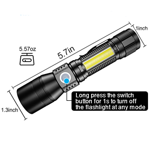 Die Taschenlampe besteht aus einer hochwertigen Aluminiumlegierung und ist nach IPX4 wasserdicht, was sie vor Spritzwasser schützt. Mit einer Länge von 14,5 cm und einem Gewicht von lediglich 120 g ist sie leicht zu tragen und ideal für den täglichen Einsatz. Ob beim Outdoor-Abenteuer oder für die Sicherheit zu Hause – die robuste Bauweise sorgt für Langlebigkeit.