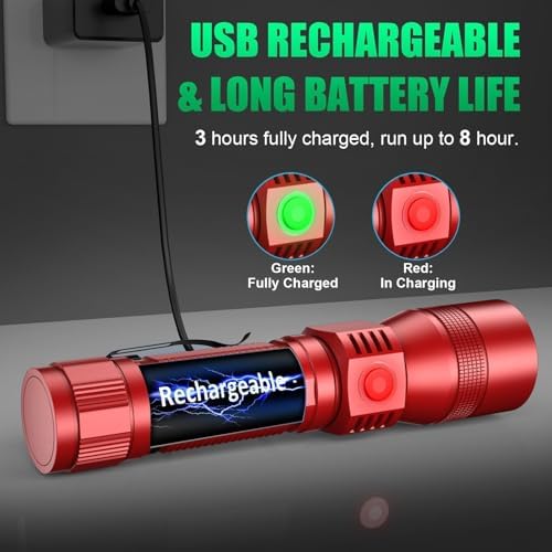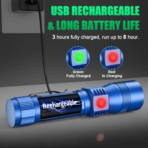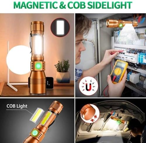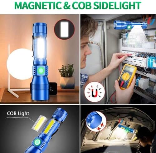 Die integrierten 2200 mAh Akkus ermöglichen ein unkompliziertes Aufladen und sorgen dafür, dass Sie stets bereit sind, wenn es darauf ankommt. Mit ihrer starken magnetischen Basis kann die Taschenlampe problemlos an metallischen Oberflächen befestigt werden und trägt bis zu 2 kg – ideal für Nachtarbeiten, Notfälle oder Reparaturen. Genießen Sie die Freiheit Ihrer Hände bei allerhand Aktivitäten.