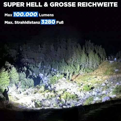 - Extrem hohe Helligkeit von 100.000 Lumen: Erleben Sie unübertroffene Sichtbarkeit für Camping, Nachtaktivitäten und mehr.