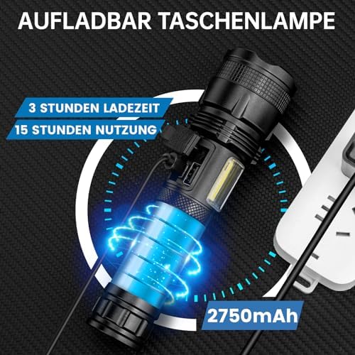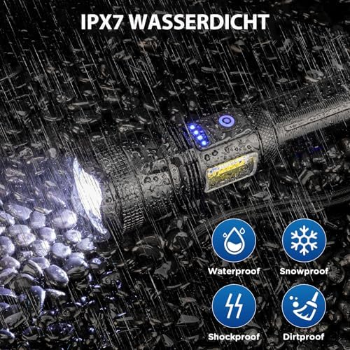 LED Taschenlampe von – 100.000 Lumen, 7 Lichtmodi, IPX7 wasserdicht, ideal für Camping und Wandern – 2er Set