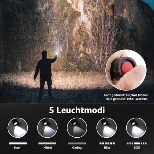 Die LE2000 bietet Ihnen fünf verschiedene Beleuchtungsmodi: Hoch, Mittel, Niedrig, SOS und Blitz. Diese Vielfalt an Einstellmöglichkeiten macht die Lampe perfekt für diverse Outdoor-Aktivitäten. Seien es angespannte Nächte beim Angeln, aufregende Läufe oder entspannte Campingausflüge – Sie sind stets gut ausgestattet.