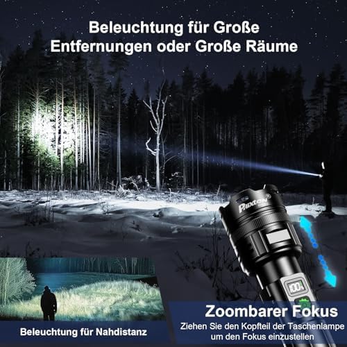 PHIXTON LED Taschenlampe 500000 Lumens – Extrem Hell & Wiederaufladbar für Outdoor SicherheitPHIXTON LED Taschenlampe 500000 Lumens – Extrem Hell & Wiederaufladbar für Outdoor Sicherheit