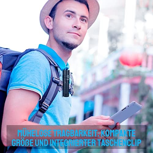 Dank der neuen, verbesserten Oberflächenstruktur liegt die Taschenlampe sehr angenehm in der Hand. Der abnehmbare Pocketclip aus Edelstahl ermöglicht es Ihnen, die Lampe problemlos an Ihrem Gürtel, in Ihrer Tasche oder am Rucksack zu befestigen. Diese durchdachte Gestaltung sorgt für eine einfache Handhabung und viel Komfort auf Ihren Abenteuern.