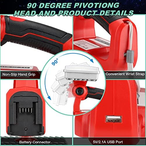 Dank des drehbaren Lampenkopfs (von 90 bis 180 Grad) können Sie das Licht genau dorthin lenken, wo Sie es benötigen. Diese Flexibilität ermöglicht es Ihnen, Ihre Arbeitsfläche optimal auszuleuchten und sorgt für eine angenehme Arbeitsatmosphäre. Die praktische Trageschlaufe macht den Transport der Lampe einfach und bequem – ideal für Handwerker, Bauprojekte oder allgemeine Outdoor-Aktivitäten.