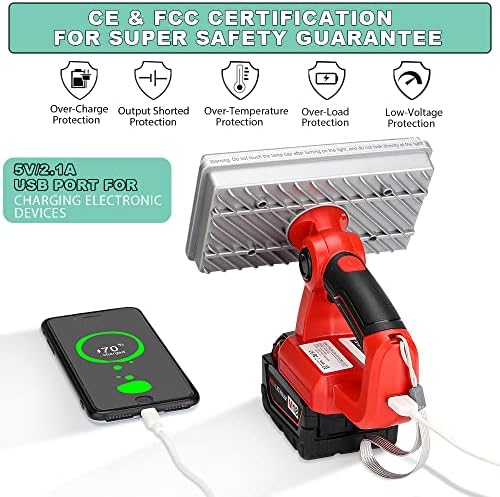 Mit einer Leistung von 30W und beeindruckenden 3300LM bietet dieses Spotlight eine außergewöhnlich helle Beleuchtung. Es ist perfekt geeignet für Arbeiten in dunklen Umgebungen oder bei schlechten Lichtverhältnissen. Zusätzlich sorgt der integrierte 5V/2.1A USB-Anschluss dafür, dass Sie Ihre Mobilgeräte im Notfall aufladen können – eine praktische Funktion, die in vielen Situationen von Vorteil ist.